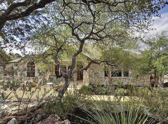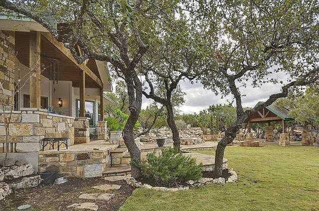 Custom home nestled on 1.6+ acres of hill country.Exquisite private & gated living.Amazing details include:stone walls,detailed wood work,crown molding,tons of windows that provide great natural light,custom dbl-sided aquarium,1 bed wired for media room.Stunning gourmet kitchen has it all.Spacious master retreat w/sitting area room & coffered ceiling.Covered front/back porch w/grill.Additional separate covered outdoor space + bonus workshop/storage bldg.Mature trees & landscaping + water feature.