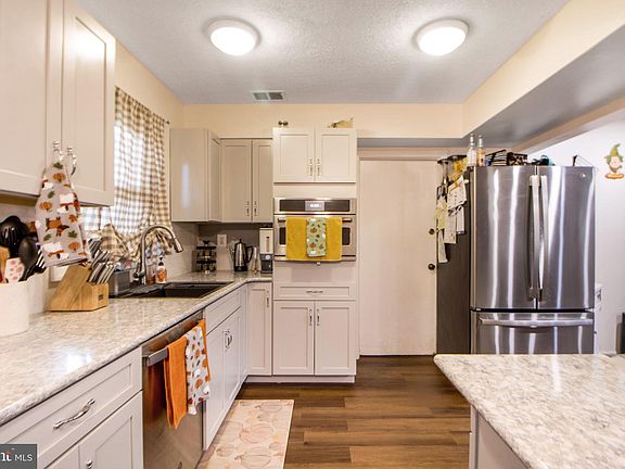 ASSUMABLE VA LOAN 2.875% for qualified buyers! PRICED TO SELL! Yorktown section of Bowie is brimming with fantastic features. The spacious living room boasts a beautiful bay window and leads to a large, charming eat-in kitchen adorned with ceramic tile and freshly painted walls. Additionally, there's an updated full bathroom with a tub and two well-sized bedrooms on this level. Upstairs, there are two more bedrooms and a brand-new, beautifully updated full bathroom with a shower. The large master bedroom includes two closets. The extra-large laundry area features fresh paint, new flooring, and convenient shelving, with separate access to the outside and the garage. Step outside to relax on the front porch as you savor your morning coffee and to enjoy the flat, oversized, and fully fenced backyard, complete with an expansive patio and a useful shed. Numerous updates enhance the property's appeal, including a new roof in 2020, updated windows that tilt in for easy cleaning, 6-panel doors with updated hardware, a wired alarm system, a new water heater (Feb 2022), a new HVAC system (Aug 2023), new second-floor flooring (Jul 2021), and fresh interior paint. The street features sidewalks, and the extended driveway provides ample additional parking space. Centrally located, this home offers easy access to Baltimore, Washington, Annapolis, and more via Route 301, Route 50, and Baltimore-Washington Parkway. Yorktown Elementary School is conveniently situated nearby, and you'll find shopping, churches, restaurants, and more within close proximity. Don't miss the opportunity to view this must-see home, where comfort and convenience await!