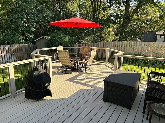 The spacious kitchen has granite countertops, solid oak flooring, pantry with pull-out shelves, and a generous island. Enjoy new carpet in the living and family rooms, repainted lower level, and a brand-new deck. Additional highlights include seamless steel siding, Andersen casement windows, a 12-foot ceiling with bay window, and a heated, insulated garage. Fantastic location near parks, a pond with winter skating, and walking distance to Sky Oaks Elementary and Nicollet Middle School. Close to Burnsville City Hall and great local restaurants!