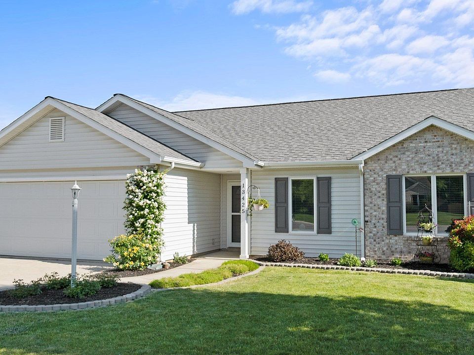 Welcome to this charming home with great curb appeal, nestled on a tranquil cul-de-sac in the quiet town of Grabill. Conveniently located near the town center and library, residents can enjoy easy access to amenities and services. Recently upgraded with new flooring, carpet, and paint, this residence offers a fresh and inviting atmosphere. Features include the following, open floor plan with a cathedral ceiling in the Great Room, creating a spacious and elegant living space. Ceiling fans are installed throughout the house, providing comfort and circulation. Abundant windows throughout the home allow natural light to fill the rooms, creating a bright and airy ambiance. The eat-in kitchen is perfect for casual dining and offers ample counterspace and cabinets for all your culinary needs. A rare find, this home boasts four bedrooms, providing plenty of space for a growing family or guests. The primary bedroom features a convenient walk-in closet and a private en-suite bathroom with garden tub/shower. The exterior of the home showcases a beautiful combination of vinyl and brick, offering durability and aesthetic appeal. Situated on more than a quarter acre, this property boasts one of the largest lots in the neighborhood. The two-car attached garage provides convenience and additional storage space with a pull-down storage option. Additional interior features include 6 panel doors, Spanish lace ceilings, hickory wood stained cabinetry, seamless aluminum gutters, Anderson windows, 50-gallon water heater & Trane SEER 13 Heat Pump/Air Conditioning(routinely serviced) and all appliances to remain.