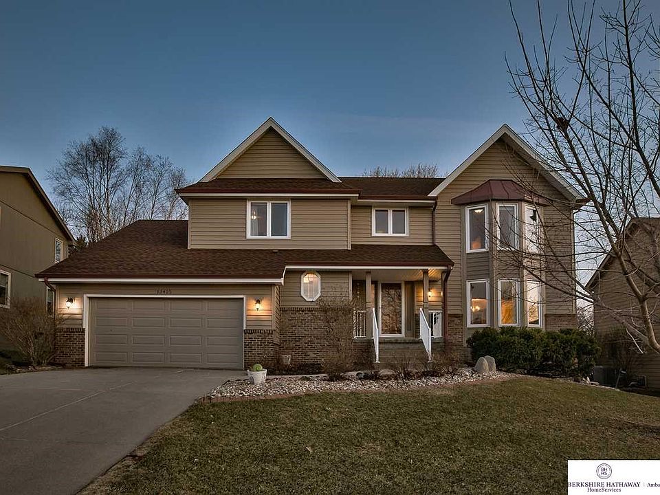(New SS dishwasher and microwave to be installed. Seller open to provide cosmetic allowance!) Beautiful, spacious home in Sunridge just waiting for you to move in and enjoy! Soaring two story entry with open staircase to 2nd level. Home features new floors in both living and family room & paint. Updated kitchen has hard-wood floors and a cozy eat in area with double sided fireplace. Large master bedroom with en-suite featuring heated floors and large walk-in shower! New carpet in all bedrooms. Large finished basement with wetbar perfect for entertaining and an abundant amount of space for storage! Home has new roof, windows, siding and HVAC Unit. Relax in the beautifully landscaped backyard with deck and pergola! Close access to Dodge St, shopping, restaurants and schools. A lot of sqft with a great price! Come discover all this home has to offer! AMA
