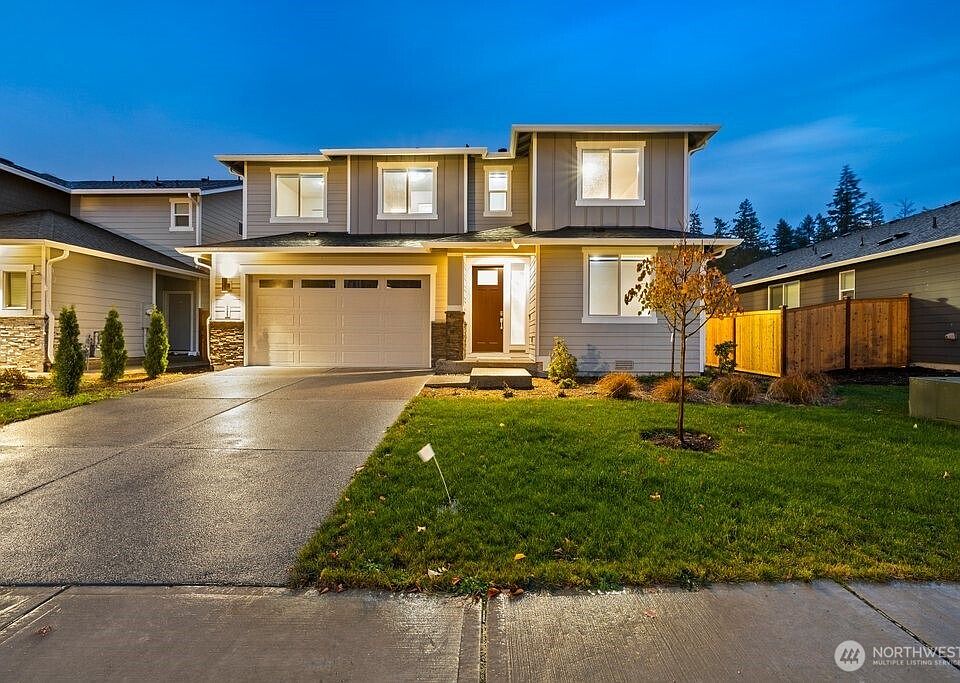 Welcome to The Pines at Sunrise! The main floor features an open-concept great room and dining area that flows to a covered patio, perfect for indoor-outdoor living. The kitchen boasts a large center island and corner pantry, ideal for entertaining and everyday use. A study/office and a half bath complete the main level. Upstairs, you'll find a versatile bonus room, three secondary bedrooms, a full hall bath, and a spacious primary suite with a walk-in closet and attached bath featuring dual vanities, soaking tub, and separate shower. Stylish, functional, and move-in ready!