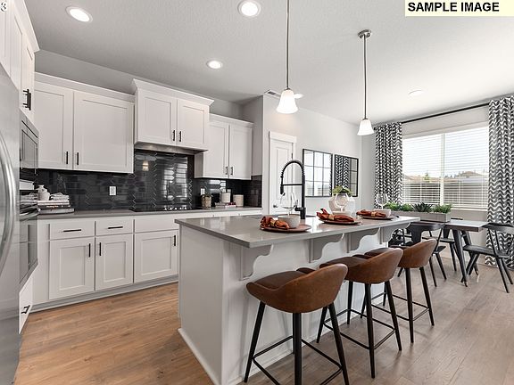 This three bedroom, two and half bath home packs incredible features into 1,609 square feet. With entry access from the garage or covered porch, the huge great room opens up to the kitchen, complete with slab counters, full kitchen backsplash, electric glass cooktop, kitchen island and pantry. The dining area sits off to the side, making family meals a cherished occasion, while boasting plenty of space in the great room for celebrating all of life's special moments. The incredible standard features keep this home in step with current trends, including 8ft doors and 9ft ceilings. Fencing is also included. Walk to your favorite coffee shop! Pics are of similar home. Est completion date Feb 2025