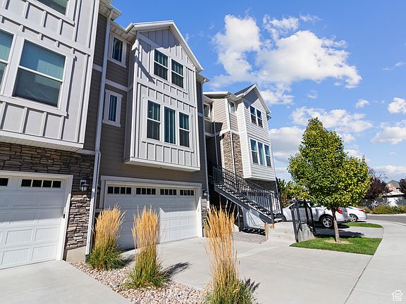 Located in Draper's premier Creekside neighborhood, this immaculate townhome showcases quality construction, high-end finishes, and a location that's hard to beat. Inside, you'll find granite countertops, custom cabinetry, high-end flooring, and recessed lighting throughout. The open main level is designed for entertaining, with a layout that feels bright, modern, and functional. Upstairs, the primary suite includes dual vanities, a walk-in closet, and plenty of space for a King bed. Step onto the balcony for valley views and evening sunsets, or enjoy quiet evenings on the private patio and fenced backyard with direct access to the neighborhood park. Just minutes from Corner Canyon trails, shopping, groceries, dining, and top-rated schools. Meticulously maintained and move-in ready, this home offers the ideal balance of quality, style, and location.