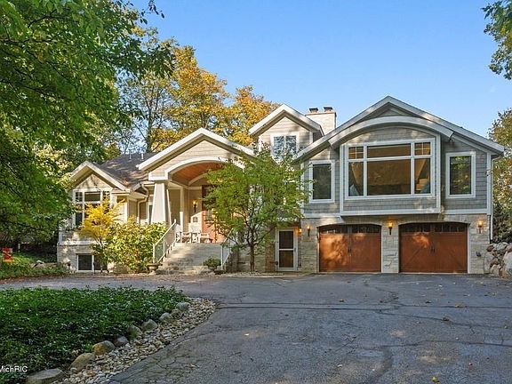 This spectacular Lake Michigan home with sandy beach is located in lovely Harbert, MI. Enjoy the tree-lined street as you arrive at your beautiful home with over 5,600 sq ft. This home offers an open concept floor plan, a great room with 25ft valued ceilings, and a total of 3 wood-burning brick fireplaces. The gourmet kitchen has beautiful black granite countertops, an oversized island with prep sink, and stainless steel appliances. The master suite is on the main level with an ensuite bathroom with heated travertine heated floor and a steam shower. Your guests and family have four large guest rooms with lake and forest views. Everyone will enjoy watching sunsets on the large deck and patio area. You have 104 ft of littoral beach rights that adjoin the private association 500 ft of beach.