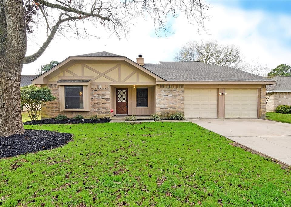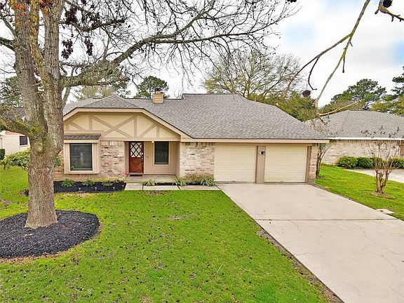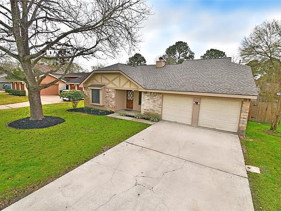 Beautiful home with numerous updates! One and a half story. Three bedrooms down and a game room upstairs. Granite throughout. Wood vinyl flooring. Updated master bath with separate tub and shower. Large walk-in closet in master. Both secondary bedrooms are large and connected by a bath with dual vanities. Roof is less than a year old. Laundry located in home. Central fireplace splits the huge den and formal dining room. Kitchen is large and open to den and formal dining. Eat-in kitchen with window seat and a ton of sunlight. Cool spiral staircase leads to upstairs game room. Large windows throughout. White kitchen cabinets, a breakfast bar, beautiful granite will have you wanting to show this place off! Huge backyard and covered patio. Two pools, volleyball court, basketball court, tennis courts, clubhouse and lots of walking trails in subdivision. NEVER FLOODED. Must see!