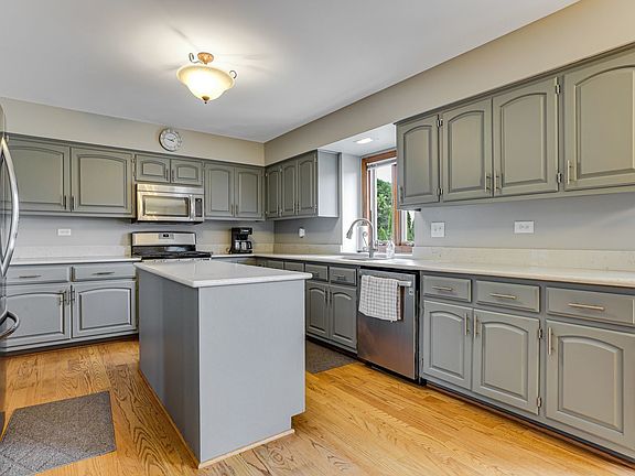 Welcome home to Walkers Grove! This traditional-style home was recently updated just for you! Take a look inside this great 3-bedroom 2.5-bathroom home! Walk into the open foyer which leads to the spacious family room! The family room has vaulted ceilings, hardwood floors, a ton of natural light, and a wood-burning fireplace! The French doors off the living room open up to the fenced-in backyard! The backyard has a large brick paver patio! Off the living room is the eat-in kitchen, recently updated with quartz countertops! The kitchen also has all stainless-steel appliances! The kitchen island is a great addition to the kitchen! The built-in desk in the kitchen provides extra cabinet storage! The separate dining room off the foyer has beautiful hardwood floors! The spacious master bedroom has been freshly painted! The en-suite bathroom has newly finished vanities, a soaker tub, and a shower! The bathroom is updated with granite countertops on both vanities and new paint! Both of the other bedrooms have vaulted ceilings! The full bathroom off of the upstairs hall has new vanities as well! The full unfinished basement has great potential to become your own masterpiece! Right outside your backyard is a very short walk to Walkers Grove Elementary School. This home is in close proximity to downtown Plainfield, Interstate 80, & Interstate 55. The good ones go fast, so hurry on over and schedule your showings!
