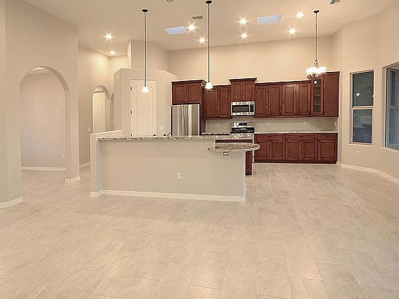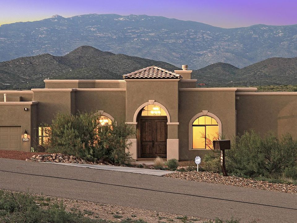 Brand New completed and move in ready. New chic Mediterranean style 4 bdrm home on almost one acre with unending up close VIEWS of Rincon Peak! In #1 rated Vail School District, get everywhere quickly with easy access to I-10 then come home to serene privacy, spaciousness, awesome sunsets and star studded night skies. This home tops out with tile floors everywhere but bedrooms, granite counters, premium cabinets, extensive covered patio, oversized windows to soak in the views and 8ft doors throughout. Kitchen is entertainers delight with loads of granite counter space, and Stainless Samsung appliance package including refrigerator. Very Grand!
