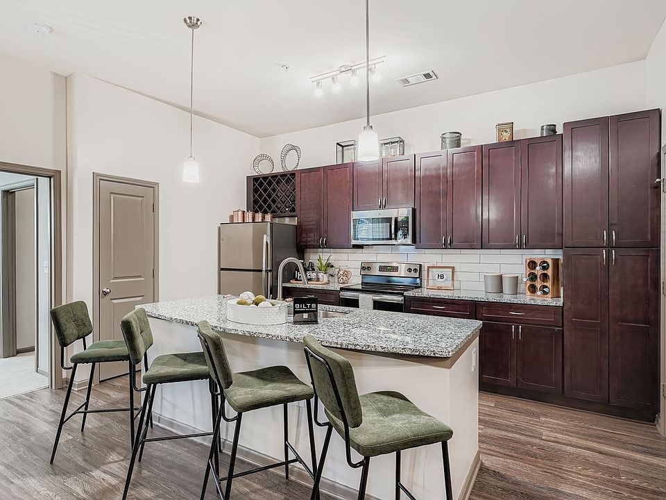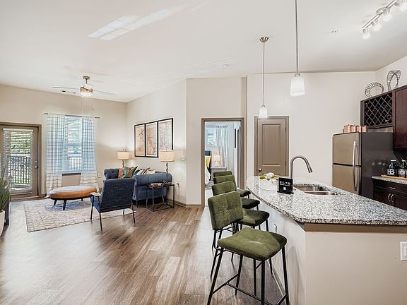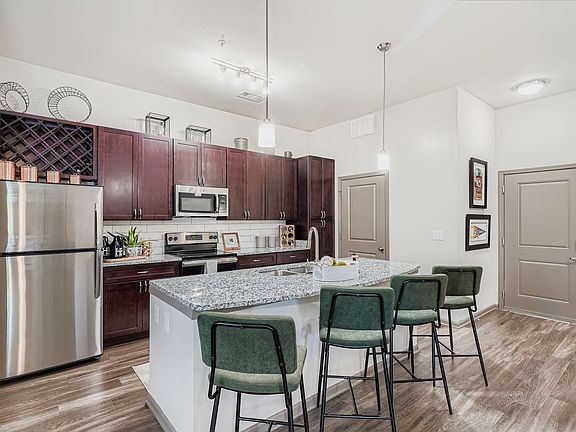 - Exterior features: Attached Garages, Bicycle storage, Business Center, Custom Cabinetry, Designer Lighting, Energy-Efficient, Stainless-Steel Appliances, Gourmet Kitchen, Granite Countertops, Hardwood-Style Flooring, On-Site Management, One, Two, and Three Bedroom Floor Plans, Online Rent Payment, Outdoor Entertainment Space, Pet Friendly, Resident Green Spaces, Undermount Kitchen Sinks, WiFi Available