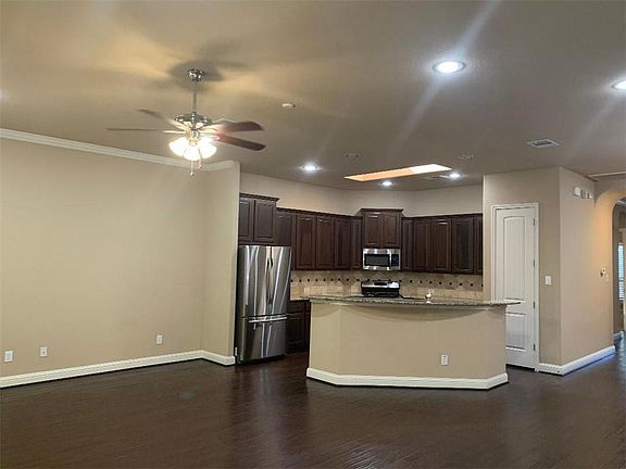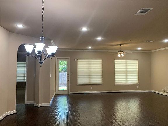 Gorgeous single-story home with 10' ceilings, wood flooring, archways, crown moldings, recess lighting! Open kitchen with a skylight, granite counters, breakfast bar, stainless appliances and is open to the dining area and living room. Huge master bath with a sitting area, double sinks, garden tub, separate shower and has a gigantic closet with built-in shelves and drawers. Huge covered patio backing to a greenbelt. Washer, dryer, refrigerator! Excellent location, close to major highways, dining, shopping, Lakeline Mall, MetroRail! Small dogs only!