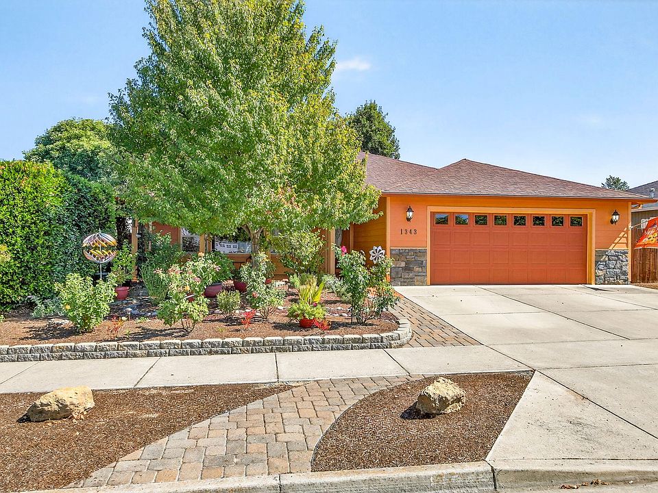 This light and bright home sits on a spacious.14-acre lot and is immaculate inside and out. There is all new flooring throughout the home, exterior paint, a one-year-old roof, new landscaping in the front and back yards, and new gas fireplace in the living room. The large living room has vaulted ceilings, and opens into the sunny dining room and kitchen, complete with white cabinets and granite counters. The French doors from the dining room lead out onto the covered patio with new pavers and ornamental trees for a peaceful and beautiful backyard view. The perfect entertaining space, for year-round enjoyment. The primary suite is charming with lots of windows, and a large primary bathroom complete with jetted tub with tile surround, separate shower, and double vanity. The second and third bedrooms are good sized with large windows, and the hallway bath has a great tub shower combo and a nice skylight. A must tour home, and in a great neighborhood.