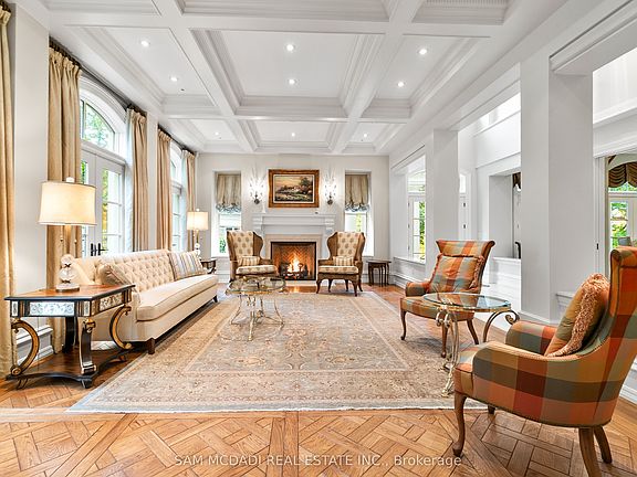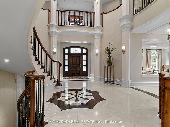 Welcome to this architectural masterpiece in Mississauga's most prestigious neighbourhood, backing onto the Credit River & the Credit Valley Golf & Country Club. With direct personal golf cart access to the course from your backyard, this estate is ideal for established professionals & golf enthusiasts. Privately situated on 8.5 acres teeming w/ wildlife, this elaborately designed estate by Ravensbrook Homes boasts over 19,000 SF across all levels, featuring luxurious finishes including radiant-heated marble & hardwood floors. Inside, experience noble interiors w/ soaring ceilings & abundant natural light cascading through expansive windows. The gourmet kitchen is a culinary showpiece overlooking manicured gardens, w/ the Credit River & golf course serving as a sophisticated backdrop. Outfitted w/ premium appliances, quartz waterfall countertops, & herringbone flooring, enjoy seamless entry from the kitchen into the family room, which features an onyx back-lit bar, & the formal dining room via the butler's servery. Each powder room on the main level is a statement of artistry, w/ Venetian-plastered walls & antique fixtures. For working professionals, enjoy two elegant home offices. Ascend to the upper level, where each bedroom offers a calming retreat w/ marble-clad ensuites, walk-in closets, & serene landscape views. The owner's suite rivals world-class hotels, w/ a marble fireplace, private terrace overlooking the lush grounds, dual walk-in closets w/ custom storage, & a 6-piece ensuite elevated w/ body jets, rainfall shower, & soaker tub. W/ a wealth of amenities, enjoy billiards w/ friends, work out in the gym, or wine taste in the cellar. Outdoors, relax in the curated entertainment space featuring multiple seating areas, an oversized cement pool w/ a cedar bar, integrated stone speakers, & sophisticated lighting. W/ an elevator serving all levels & an Elan smart system controlling lights, music, & security, this is Mississauga's most distinguished estate.
