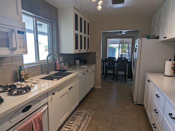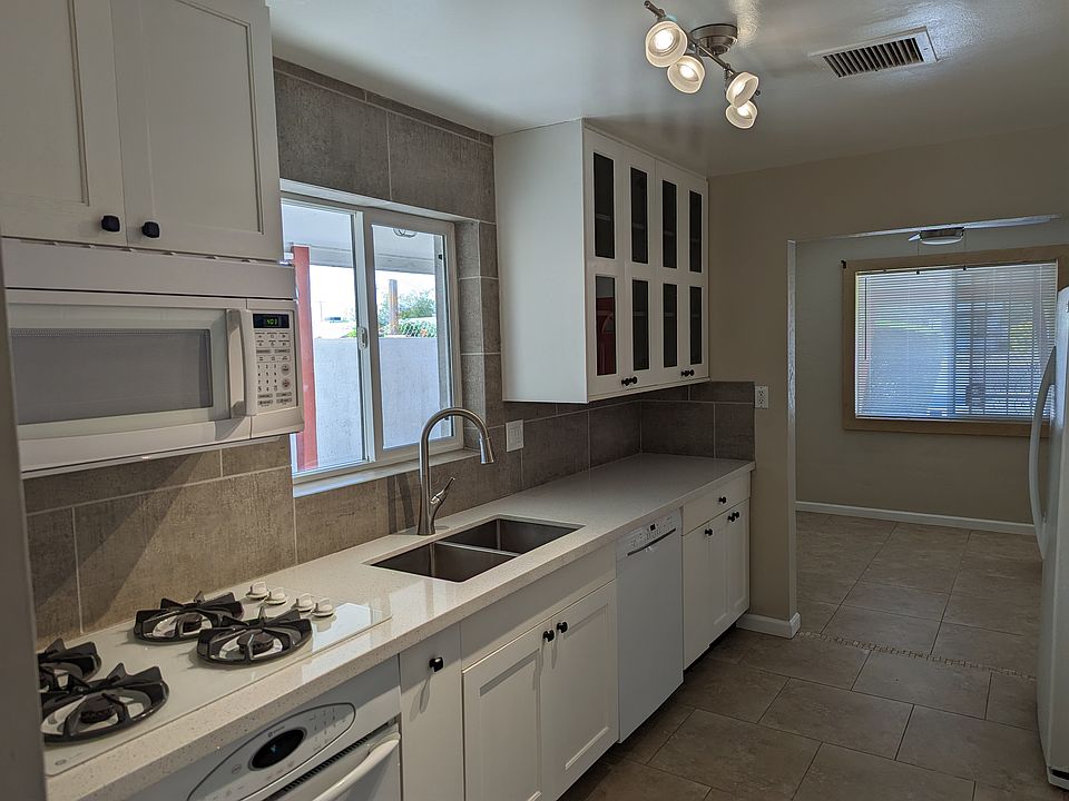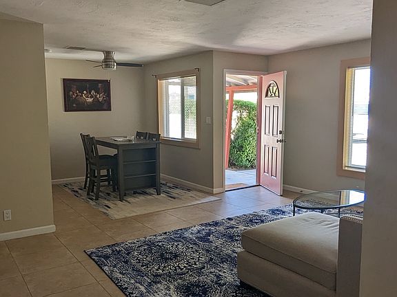 Coming soon in December, large house in desirable location. Step in the front door, and you will be surprised! This updated vintage home is much larger than you would think. The house has 2 living rooms and 4 bedrooms making it ideal for home office situations or large families. One family room leads to south facing patio with a large backyard, featuring redesigned hardscape with seating area and a firepit. The updated kitchen has quartz countertops with a modern sink and new tile. Plenty of counter space and storage with a separate pantry. The refrigerator has a water and ice dispenser, and there is a gas cooktop with an electric oven. This house is well maintained, with new toilets and overhead fans in all the bedrooms and living room. The 3 original bedrooms are wood laminate, and the rest of the house, including the master, is tile throughout. The huge master has an en suite bathroom with a walk-in shower and jacuzzi tub, a separate WC, and a huge Nordstrom closet. The other 3 bedrooms share a full-size bathroom and powder room. The utility room, with a dog door, has electric hookups with a complimentary dryer (to be maintained and/or replaced by the tenant). There is an attached carport and off-road parking. This is a large, spacious home in a great location. Available to view first week of