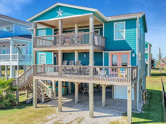 Welcome to, A Texas Star, Crystal Beach, Tx. perfect INCOME PRODUCING VRBO vacation getaway! This stunning 3-bedroom, 3-bathroom beachfront home is the perfect escape for families and groups, blending luxury and comfort. Located just steps from the sand, enjoy breathtaking ocean views and an expansive outdoor entertainment area. This gorgeous home is centrally located near the best that Crystal Beach has to offer making it an easy access not only to the beach (literally steps away!) but also local stores and restaurants. This property comes turn key ready to rent being fully furnished with all new appliances less than a year old and one of a kind beach decor throughout! Enjoy the best unobstructed beach views on the peninsula from your private two story front porch with plenty of seating from Chairs by Bill. The owners have also recently installed a brand new fence encasing the perimeter of the property so it is very pet friendly!