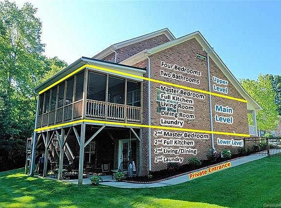 Unique property on 1/2 acre lot with endless opportunities. This property offers a large finished basement that can serve as a 2nd living quarter (with it's own living/dining/full kitchen/laundry/private entrance). You can even earn income by renting out long-term or even AirBnb if you'd like or just use as an entertainment area since it has access from inside the home also. This home basically features 3 large Master bedrooms (one on each floor) with 2 laundry facilities in the Main level and Basement. Granite Countertops, SS Appliances, Gas Cooktops and Range, Tall Cabinets, Built-in Oven/Microwave, Hardwoods, Tons of Square Footage and Storage Galore, Screened Porch on Main Level and walk-out covered patio from Basement - VERY PRIVATE BACKYARD. Ample parking with extra large driveway and 3-Car Garage. **PLEASE CLICK AND SEE WALK-THRU VIRTUAL TOUR** Home is minutes from I-485/Independence/Matthews or Downtown Mint Hill.