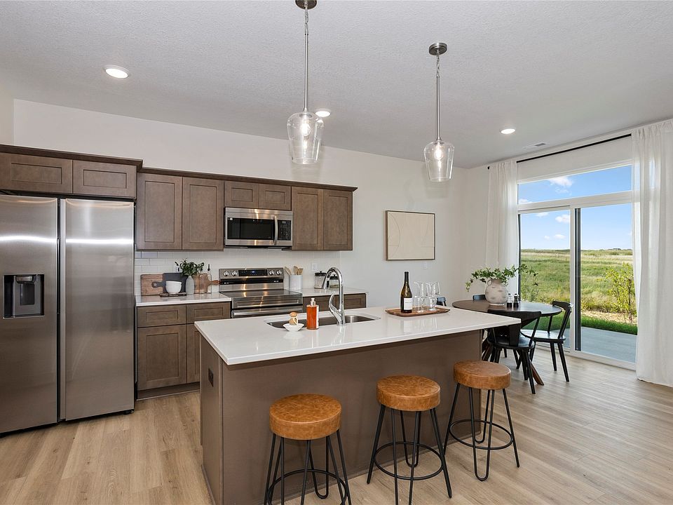**RATE BUY DOWN** 1 Year:1% rate buy down offered with Preferred Lender 10/31. Don’t miss this opportunity for a lower interest rate on your new home purchase! Welcome to this beautiful, modern Maple Plan 2-story townhome in Prairie Village, Waukee! Offering over 1,600 finished sq ft, this home features 3 spacious bedrooms, 2.5 bathrooms, and a 2-car attached garage. The open main level boasts 9 ft ceilings, upgraded LVP flooring, a cozy fireplace, and a large center island with 3cm quartz countertops and extra deep sinks. Enjoy the full overlay cabinets with hardware, large pantry, and stylish dining area—perfect for entertaining. 2x6 construction and large windows provide lasting quality and abundant natural light. Upstairs, the primary suite includes an en-suite bath and walk-in closet, plus two additional bedrooms with generous closets, a second full bath, and a laundry room. All appliances are included—even the washer and dryer! Prairie Village is one of Waukee’s newest communities near the future Town Center, parks, grocery, Sugar Creek Golf Course, and top-rated schools—all within 2 miles!