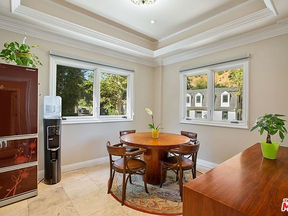 Perfectly located just north of Sunset Blvd., sits this magnificent & grand scaled Mediterranean residence! Enter through the double doors & you are immediately captivated by the wonderful open living spaces, all highlighted with gleaming wood floors & flooded with natural light! Featuring over-sized living room w/stone fireplace, Tall ceilings, stunning chef's kitchen w/cozy Bkfst nook. Luxurious custom cabinetry & culinary styled stainless steel Viking appliances. Stretch out in the magnificent family/media/game retreat (perfect for The Voice Karaoke Nights!) Separate downstairs maid/guest suite & office with built-in library could easily be an additional bedroom. Four spacious upstairs bedrooms include wonderful master suite w/serene canyon views, balcony, ample closets, dressing area, updated custom cabinetry with stone counters, separate soaking tub and shower w/sitting feature. Set in idyllic setting steps to Coldwater Canyon Park & minutes to all 90210 & Weho offers!