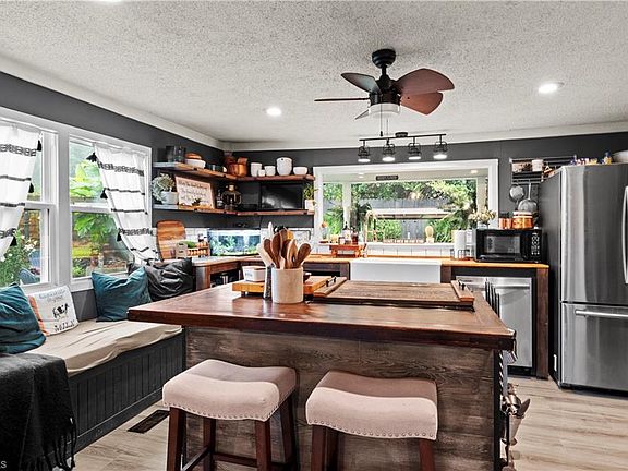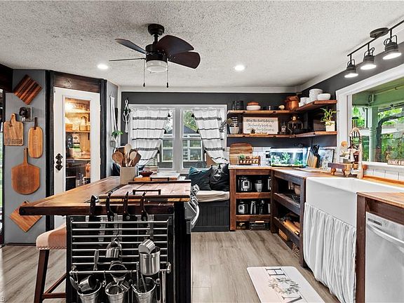 Are you looking to start a homesteading journey? You will fall in love with this beautifully updated 4-bed, 1-bath cottage. The home has received extensive updates, including the HVAC, roof/gutters, water heater, siding, and much more. This interior remodel showcases rustic & farmhouse styling. The stunning bath features a relaxing tub, tile shower & double vanities with high-end fixtures and finishes. Cook's kitchen with double pantries, a large island, and open shelving, flowing seamlessly into the spacious dining room, which is ideal for entertaining. The main level includes the primary bedroom with walk in closets, a 2nd bedroom, and laundry area. Upstairs, you will find two large bedrooms with oversized closets. Natural light fills the bonus nook, perfect for an office, guest, or craft area. Step outside to an oasis featuring a greenhouse, she shed, pole barn, chicken coop, bunny pens, bird aviary, outdoor kitchen, firepit, carport, raised garden beds, gated drive & fenced yard.