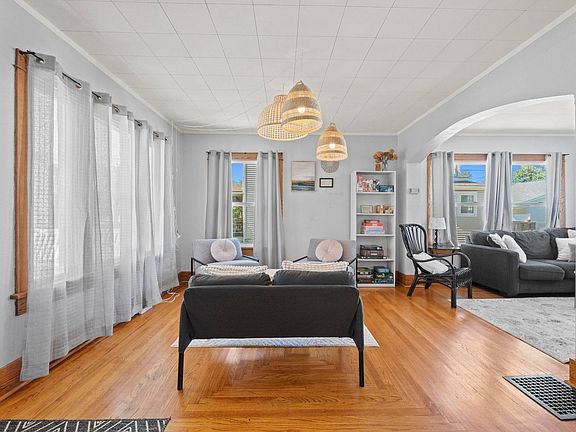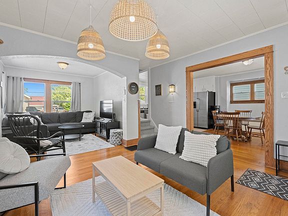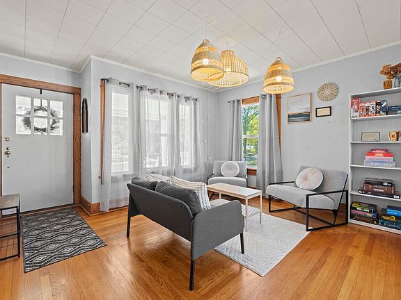 Three words... character, charm, and location! These words perfectly sum up this beautiful 3-bedroom home. The first-floor layout, with original hardwood floors, is open and bright, offering a living room with two gathering areas, a designated dining area, and an updated kitchen with a convenient center island and stainless steel appliances. Up the open stairway, you’ll find 3 spacious bedrooms with hardwood floors, built-in storage, and a full bath. The dry basement offers a laundry area, an abundance of storage, and the potential for a workout, office space, or craft/workshop area. A mudroom (with washer/dryer hookups for a main floor laundry option) leads to a generous back deck with plenty of seating for entertaining and a large fenced-in yard for endless outdoor fun! The long driveway and one-car detached garage allow for off-street parking and extra storage. The front covered porch, with a swing and additional seating, is the perfect spot to start or end your day. You’ll love living on Poplar Street, with easy access to the high school, shopping, restaurants, and Hwy 24. This home offers many updates, including a metal roof, HVAC, and windows. It's loaded with personality and ready for you to call home. Schedule a showing today!