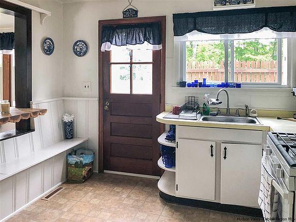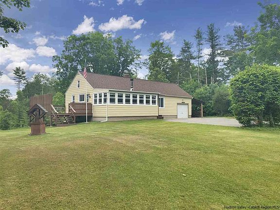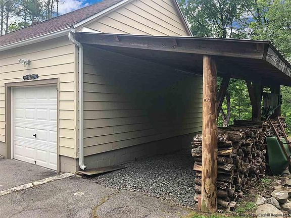 Conveniently located close to the Saugerties Village, Woodstock Village, Kingston and the NY Thruway, this 3 bedroom ranch offers a huge front lawn and very private backyard. A stream borders two sides of the parcel. The meticulously maintained home features new windows, new roof, new floors, new water tank Unique touches such as the hand carved kitchen counter top that separate the dining area from the kitchen or the thick wooden shelves in the front entrance way, give this cozy ranch a warm and an inviting feeling. The current owners built a large deck to the side of the house with views of the many trees shrubs and seasonal views of Overlook mountain across the road. They also built a car port to the side of the garage. The pull down attic is very large and could be renovated to expand the house.