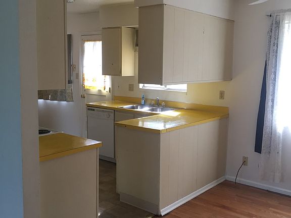 Standard Tri-level, sunny interior, with main floor Living/Dining "L-shape" room with large windows, fireplace, kitchen is behind a privacy wall plus an open kitchenette area; upstairs contains a hallway with three bedrooms, master bedroom with adjoining 3/4 bath, full bathroom is in the hall, 2 secondary bedrooms, one with roomy shelving, the other contains an A/C window unit. Sunny lower garden level has newly carpeted den/office space with roomy shelving and entry way to the attached single car garage. Large unfinished basement with storage shelving and W/D; back yard contains small brick patio area and pergola with grapevine, raised garden bed, and a fenced yard with mature tree and bushes.
