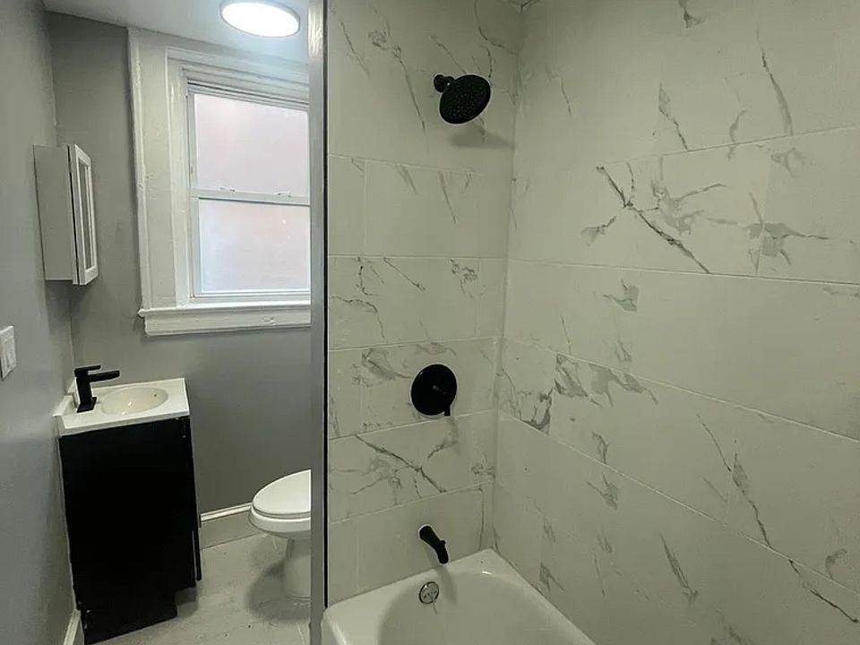 Modern kitchenStylish bathroomBright natural lightingHardwood floors
