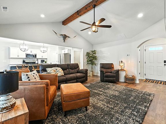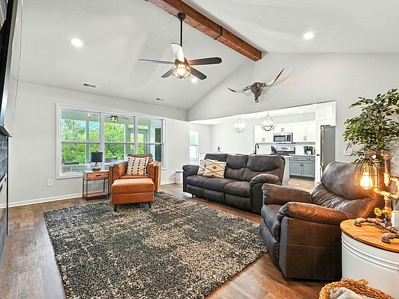 Move-in ready 3 bedroom, 2 bath ranch in the highly sought-after Northwest Allen County School District! This like-new home offers a split-bedroom, open-concept layout with a spacious living room featuring cathedral ceilings and a modern fireplace with shiplap surround. The kitchen boasts painted cabinets, a large island, stainless steel appliances, and subway tile backsplash, all tied together with durable vinyl plank flooring. The private primary suite is set apart from the secondary bedrooms, while a screened-in porch extends your living space outdoors. Skip the hassles of new construction—this home already includes an established yard, landscaping, and window treatments. Conveniently located near schools, shopping, and dining, this home blends modern comfort with everyday convenience.