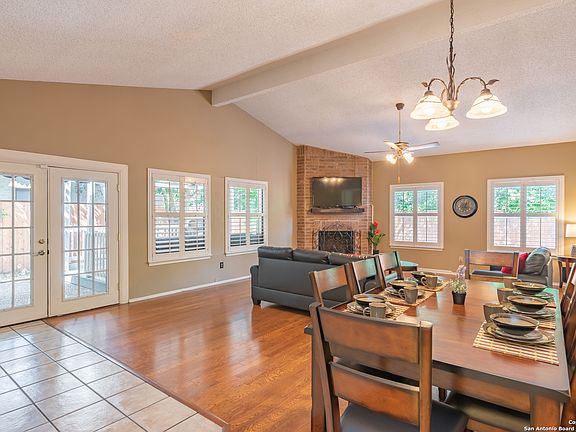 Welcome to this charming 3-bedroom, 2-bath, 1,683 sq. ft. home in the sought-after Churchill Forest! This San Antonio retreat features beautiful wood flooring, high ceilings, and a cozy fireplace, offering the perfect blend of comfort and style. The thoughtfully updated bathroom adds modern finishes and a clean, stylish look. Step outside to a private backyard oasis with a spacious pergola, string lighting, ceiling fan, and plenty of room to relax in a hammock or entertain friends. The fenced yard also includes a fun game area and mature shade trees, creating an inviting space for gatherings. Combining indoor comfort with unique outdoor living, this home is ideal for everyday living or entertaining. Conveniently located near shopping, dining, and major highways, this property is ready for its next owner to enjoy!