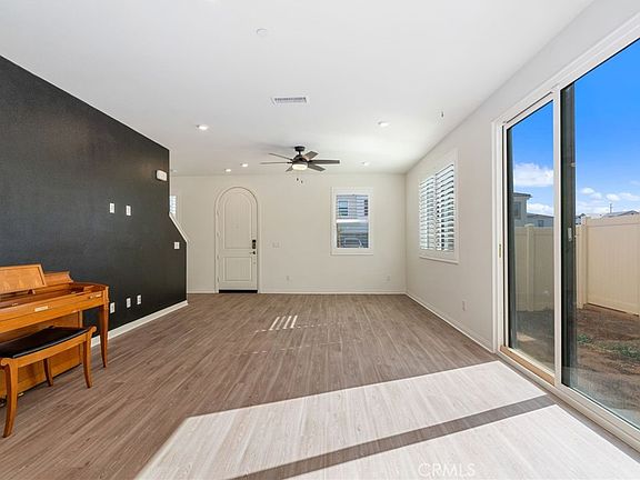 Welcome to modern living in the gated community of Stonebrook Meadows! This beautifully upgraded home is in a very safe area with an open floor-plan perfect for family living. The kitchen shines with modern flat-panel cabinets, newer appliances, newer recessed lighting, plantation shutters, and brand new floors throughout the main level. There is a full bedroom and bathroom downstairs ideal for guests, in-laws, or a home office. Upstairs, a sunny loft with mountain views offers the perfect play or study space. The spacious layout includes a dedicated laundry room, the primary suite, and two secondary bedrooms and bath. This home also includes fully paid-off solar panels, a water softener system and a large under-stair closet that adds valuable extra storage. The community also includes a playground, dog park, BBQ picnic area, and conveniently located near the 10 freeway.