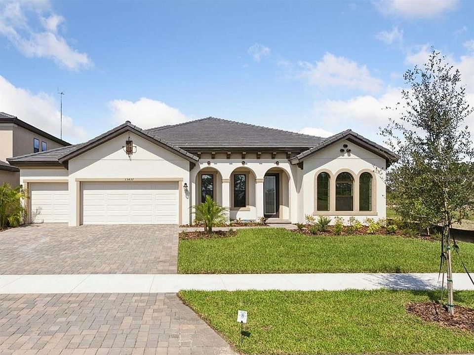 Key Largo I - This Key Largo I is Move-In Ready! The Key Largo I offers the perfect blend of traditional Florida charm and modern luxury this fall. This home isn't just a place to live; it's an exemplary open-style plan meticulously crafted to maximize comfort and practicality where you need it most. The moment you arrive, you will immediately notice the impressive sense of scale. The foyer, formal dining room, grand room, and spectacular kitchen all feature soaring twelve-foot ceilings, cultivating a breathtakingly expansive and inviting atmosphere. This magnificent open floorplan is finished with a curated selection of premium materials designed for lasting quality and timeless style, including elegant Sonoma Linen cabinets, sleek Frost Whte MSI Quartz countertops, and beautiful Vestige Daybreak Birch Tile flooring. Your private owner's retreat, accessed through a distinguished double-door entry, creates a serene sanctuary complete with two spacious walk-in closets and a luxurious private bath, a true haven for relaxation. Beyond your private space, the Key Largo I enhances convenience with an oversized laundry room, offers seamless indoor-outdoor enjoyment on a large covered lanai, and includes an upgraded bonus room to perfectly suit your unique lifestyle needs. The Key Largo I delivers an exceptional living experience, expertly blending classic elegance with thoughtful functionality for the discerning homeowner. Listing Price amount for this Pending Sale includes Design and Structural Options.
