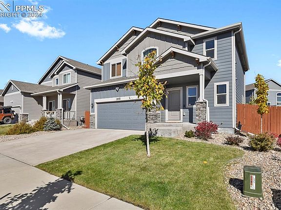 Your dream home awaits in this beautiful 2 story home located in Meridian Ranch . This 4 bed 2.5 Bath with the great feature of laundry upstairs , newer house that was Built in 2017, this home features tons of natural light, open floor plan. Brand new carpet as of Feb 27 2025 .The kitchen include a pantry and a spacious kitchen counter top with a deep Farmers Kitchen sink . lots of natural light & updated engineered hardwood floors. The primary suite features vaulted ceilings, dual vanities & a walk in closet. The fully Fenced in & landscaped backyard with brand new sod installed just last week . South east facing driveway for those snowy days that the sun will help melt that snow and make it easer to clean , Included in your HOA is the use of the Ranch house recreation center with great ammonites for all ages . Falcon school district with 3 different grade schools close by ,easy shopping and dining with the new king Soopers , a Walmart and a Safeway you wont have to drive far for all your essentials . Don't delay call today to see this one before its gone :)