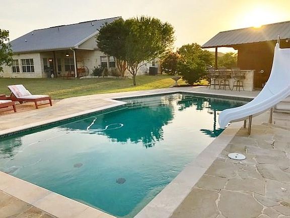Country at it's best! Remarkable 4 bedroom Austin Stone home with an open concept. Home includes a office in the home, pool house, and beautiful saltwater pool, playground area, and outdoor fireplace area. So many amenities to this property to the family who loves the outdoors and animals. Two barns, wash rack with hot and cold water, chutes, chicken coop, game room in the barn, office, tack room, storage, bath facilities all located in the barns. A great lighted arena and grasses for grazing. Lots of wildlife and a pond and creek on the property. This is a must see!