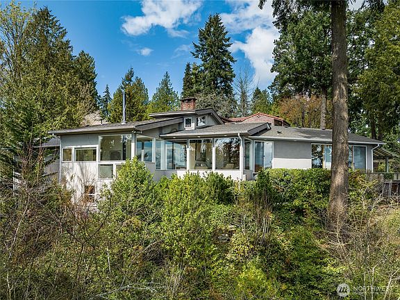Perched above the lake with 180-degree views, this stunning mid-century home offers a rare blend of privacy, space, and endless potential. Featuring 3 bed and 2.5 baths, this home boasts an add'l open loft and a sprawling great room—perfect for entertaining or transforming into a luxurious primary suite. The open kitchen offers a functional layout with plenty of space to host gatherings. Expansive views of Mt. Rainier, downtown Bellevue, and the shimmering lake below, with the included adjacent lot ensuring lasting view protection. Enjoy A/C in the summer or retreat to the patio overlooking the lake. Designed by an award-winning architect to maximize natural light and scenery, this home is a true retreat while remaining close to amenities.