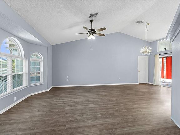 Beautiful 3 Bedroom, 2 bathroom Pool home with a 2 car Garage. Located on a quiet cul-de-sac in the gated community of Pristine Place. The front porch is screened & the garage has a screen. When you enter the front door you walk into the large living room/great room. There are sliding glass doors surrounding the pool and outdoor kitchen area. The primary bedroom has two walk in closets and an en suite bathroom with a large tub and separate shower. The kitchen is open and is attached to a breakfast/dining area. The pool is screened and has a covered pool deck, so you can sit outside rain or shine. Additional laundry room inside with lots of cabinets for storage. New roof in 2020, new A/C 2021. Pristine Place is gated, has low HOA fees, offering a clubhouse, fitness center, community pool, tennis courts, pickleball court, and regular social events . Great location close to shopping, dining, medical facilities, and the Suncoast Parkway, which provides easy access to Tampa and the Gulf Coast beaches.