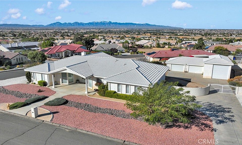 Beautiful home in an amazing area of Apple Valley. 6 CAR GARAGE PLUS RV GARAGE!! Gorgeous entrance with oversized doors and windows, 10 foot ceilings. 3 bedrooms with their own bathroom plus a guest bath. Owners suite is HUGE with a fireplace to enjoy those cozy evenings. Bathroom is very elegant with large soaking tub, oversized shower, Double Vanities, Separate Water Closet, Big Walk In Closet. Large Kitchen and Living Room includes a Walk-in Pantry, Built-ins and Fireplace in the Living Room. Formal Dining room that can also be used as an office. Separate Laundry room with door to an oversized 2 car garage. Gorgeous view of the mountains and City Lights. Back yard has a block wall, roses, and a large back patio.