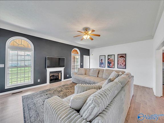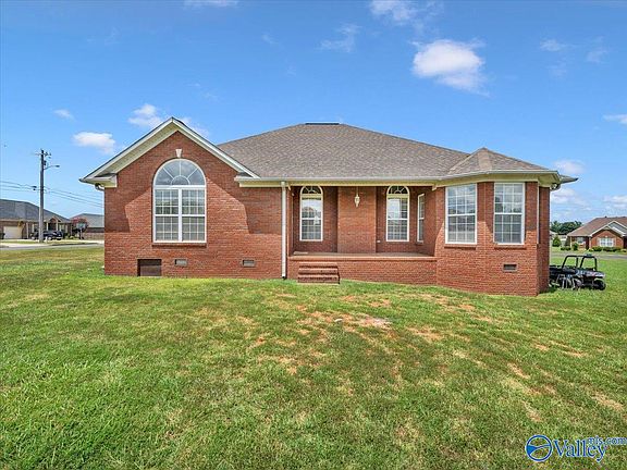 Discover your dream retreat! This stunning home welcomes you with soaring 9' ceilings, vaulted bedroom ceilings, and gorgeous quartz countertops. Nestled on a rare corner lot over 1/2 acre, enjoy privacy and space just minutes from Hwy 72 and quick I-565 access. Step inside to an inviting layout where the spacious family room glows with a cozy fireplace—perfect for chilly nights. The kitchen shines with fresh painted cabinets, sleek stainless appliances, and dazzling countertops. Updated lighting elevates the dining room & foyer for that perfect touch of elegance. Bonus: the garage boasts a mini-split HVAC, instantly transforming it into a year-round home gym or other usable space.