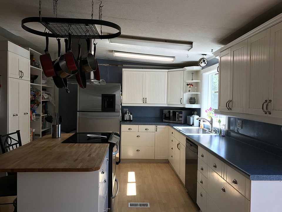This is an 1980 manufactured home kept in very good condition. We did a new kitchen, laminate floors throughout the home except for laundry room and bathrooms, painted all the wood paneling which sort of looks like ship lap now about ten years ago. New double pane windows installed five years ago. Under house stand up storage and stand-alone shed, both with electricity, provide tons of storage. Has complete hook-ups for RV. Carport covered parking. Huge yard with play structure. A new furnace and heat pump was installed August 10/17. Parking for up to nine cars on property and parking for four or five cars on street in front of home. Large front yard, great for large outdoor parties. 10 b 18 ft back deck accessible from two doors.