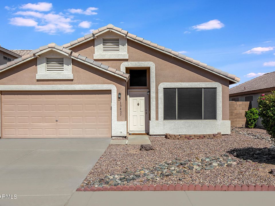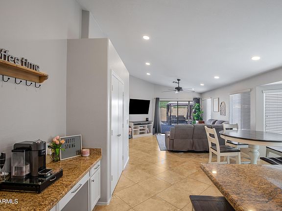 Don't miss your chance to own this stunning 4-bedroom, 2-bathroom home! As you enter, you'll be greeted by a spacious great room with a view of the backyard. The neutral color scheme creates a cozy, inviting atmosphere. The updated kitchen boasts granite countertops and modern appliances. You'll appreciate the ensuite bathroom with dual sinks and a large walk-in closet. Three additional bedrooms offer versatile options for guests, kids, or a home office. Outside, you'll find a private backyard oasis with a covered patio and a low-maintenance, spacious yard featuring artificial turf—ideal for entertaining or relaxing. Plus, it's conveniently located near freeway access, Arrowhead Mall, P83, and the Peoria Sports Complex.