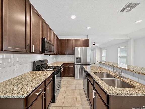 Welcome Home to Abbott Place in St. Hedwig, TX! Step inside this charming, spacious single-story home featuring 3 bedrooms, 2 bathrooms, and a 2-car garage. The open-concept layout flows beautifully, highlighted by a gourmet kitchen complete with granite countertops, 42-inch cabinetry, a large island, and a filtered water drinking system for added convenience. Relax outdoors under your covered patio or cool off in the private gated community pool - perfect for Texas summers! Located in the welcoming Abbott Place community of St. Hedwig, this home offers modern comfort, energy efficiency, and neighborhood amenities all in one incredible package. Schedule your private tour today - this home and low-rate loan won't last long!