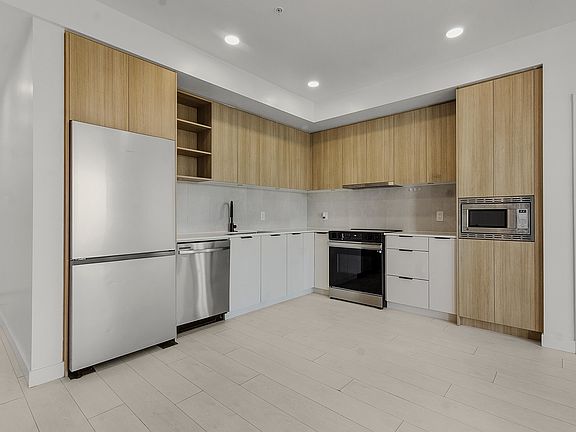 Bright unitOpen-concept layoutLaminate flooringIn-floor heatingSleek kitchenStainless steel appliancesContemporary cabinetry