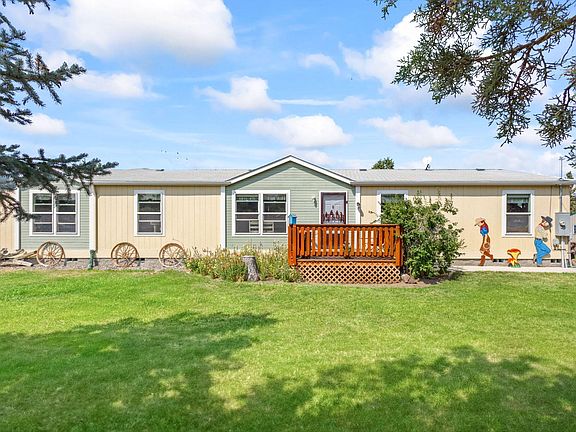 This jewel has a lot to offer. 2 acres, woven wire fenced and cross fenced located on paved road. 1856 square foot, 4 bedroom, 2 bath home with double attached garage. Home has some updating with cabinetry and primary bath walk in shower. 14x20 patio with pergola cover and fun water feature with lily pads and fish. 8x10 front deck and concrete sidewalks front and back. Western front on greenhouse and poultry coup. Barn with 2-3 box stalls, 3 ton hay storage and attached workshop. Nice small horse set up with small corral. Very good producing well- log reads 40+ GPM. Extraordinarily landscaped with beautiful trees and flowers. Carport for boat or RV. Gated driveway with lots of turn around space and parking area. School bus stops in front of the property. Property has been inspected by state fire marshal with good marks.