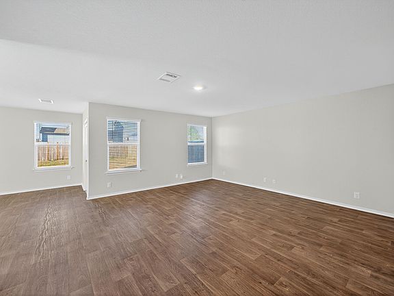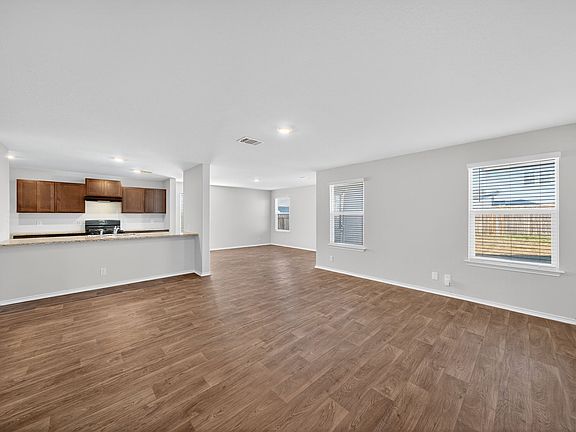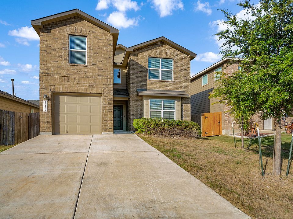 Discover this stunning 4-bedroom, 3-bath home located in the desirable Whisper Falls community. The inviting layout features vinyl flooring throughout the main living areas and plush carpeting upstairs. The open-concept design seamlessly connects the living room, dining area, and breakfast nook, creating an expansive flow that enhances both comfort and functionality. The kitchen is a standout, complete with granite countertops and a gas range for effortless cooking. Upstairs, spacious bedrooms provide plenty of room to unwind. Step outside to an oversized backyard-ideal for outdoor enjoyment or entertaining. Community amenities include a pool, clubhouse, park, playground, jogging trails, and sports court. Conveniently located near Lackland AFB, Loop 1604, Hwy 90, and great shopping and dining options, this home combines modern living with an exceptional location.