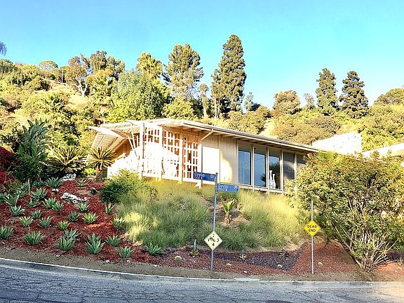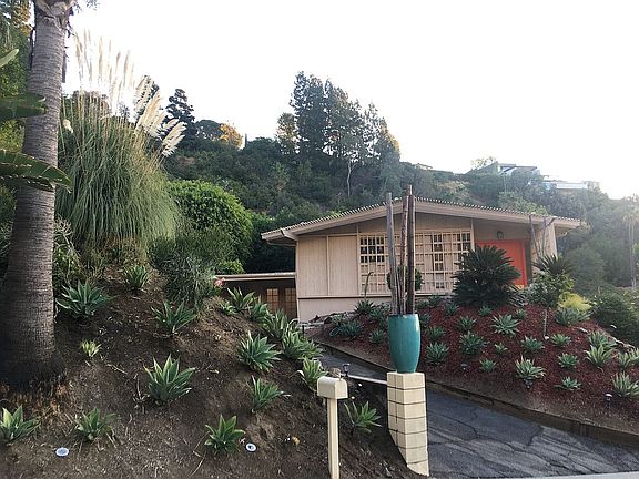This 1960s Mid-Century Modern House sits on a gently sloping hill in a prestigious West- Hollywood private street. Built elevated and floating above ground level the house position offers magnificent views of the City of Angels. The 3000 sqft interior has an open plan that allows free flow through its spaces. With a large combination of living and dining room the house extends back to the exterior terrace and garden and feels like a suspended structure. The massive, natural rock double fireplace anchors the living room while letting traffic flow around it. Floor to ceiling glass windows throughout the house maximized the views allowing in light and pulling sunshine indoors. There are 3BR, 2.5Bath,large kitchen, all rooms with immediate access to the garden. The house presents a true aesthetic beauty capturing the 60s era accurate, producing an authentic visual style, a candid sweet magical mood with original furnishings and decor. Viewing only by appointment.