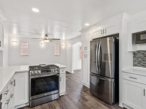 4 bedroom, 2 bathroom home on a corner lot with a fenced in yard! Enjoy large room sizes, ample natural light and a newer kitchen with plenty of cabinet storage and countertop space. Newer flooring throughout and two bathrooms make this a house you don't want to miss out on! This house has central air conditioning, a finished basement game room that walks out to the backyard and an oversized driveway! Fully equipped kitchen with black stainless appliances are included in this lease. Hibachi style gas stove built right into the counter!