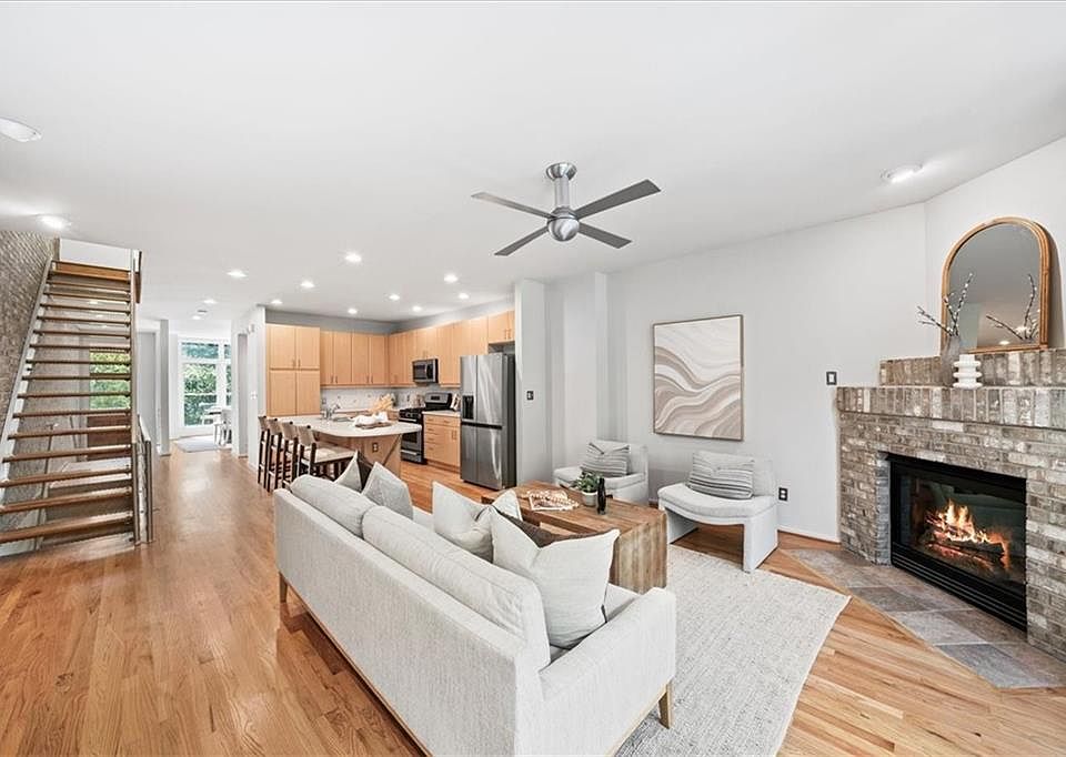 Welcome to Fernwood Park, a fee-simple townhome community just steps away from the shops and restaurants on Dresden Drive! This freshly painted two bedroom unit is move-in ready and full of natural light. On the main floor, you will find a spacious dining room, half bath, and open kitchen and living area with a gas fireplace and gorgeous hardwood floors. The living room opens directly onto the deck and fenced-in backyard area. This unit backs up to the neighborhood green space, offering privacy and tranquility. Upstairs, you will find an oversized primary suite with a double vanity and walk-in closet, as well as a secondary bedroom and bathroom. The basement level has an additional half bath and a bonus space perfect for a home office, playroom, workout room, or guest area. The tandem 2-car garage offers additional storage. This is a wonderful community convenient to all that Brookhaven has to offer while still maintaining a peaceful neighborhood feel.