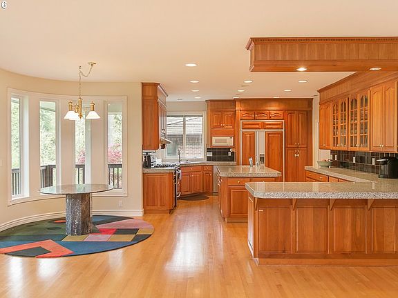 Beautiful riverfront traditional on a quiet cul-de-sac just blocks from the bustling town of Willamette. With serene views and the sounds of the Tualatin River rapids this home has a relaxing charm about it: main floor master suite, great room concept off of the gourmet kitchen, main floor den office and 3 car garage, this home fits many life styles. The lower level offers 3 large guest rooms and a bonus room. Decking and a level yard.
