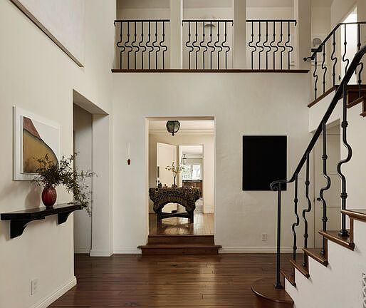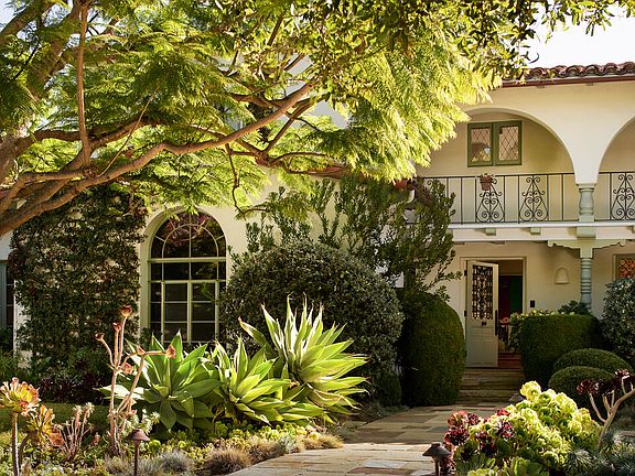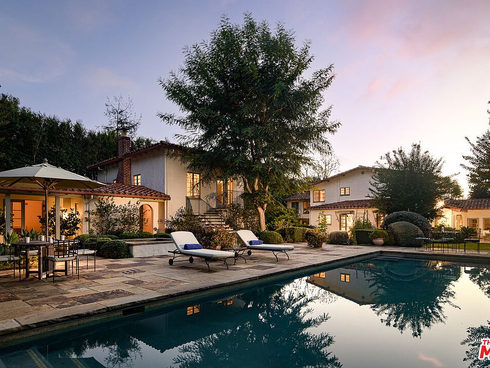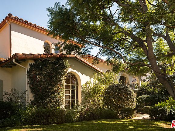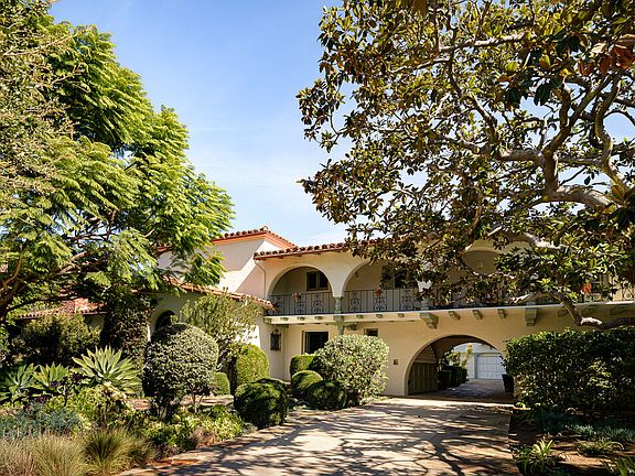A phenomenal, pure 1930's Spanish on the coveted Eastern edge of Palisades Riviera. Set behind gates with exceptional landscaping and mature trees, this remodeled private compound feels like an exclusive resort. Quintessential California living begins when entering the grand two-story entryway. A beautiful living room with a vaulted hand-carved ceiling and a wood-burning fireplace opens to a secluded courtyard, an alluring den, intimate dining room, and a spacious eat-in kitchen adjacent to a vine covered outdoor dining area. Upstairs are four generous and well-appointed bedrooms, including a sun-filled master suite with a private balcony. This offering also includes a bedroom attached to the gated porte-cochere, a long double gated driveway leading to a three-car garage, and an outdoor barbecue on the southern part of the compound. The glorious backyard offers a sun-drenched flat grassy yard, vegetable garden, beautiful pool and separate spa, a guest suite accompanied by an exterior wellness with sauna, cold plunge, outdoor shower and an extremely large studio above the garage, all set in complete privacy. Truly one of the most special offerings in all the Westside. Shown to prequalified prospects only.