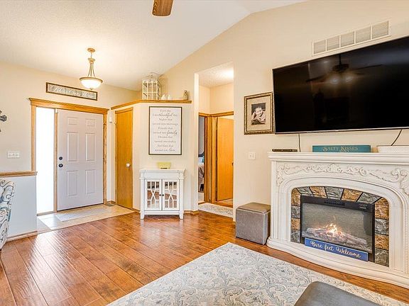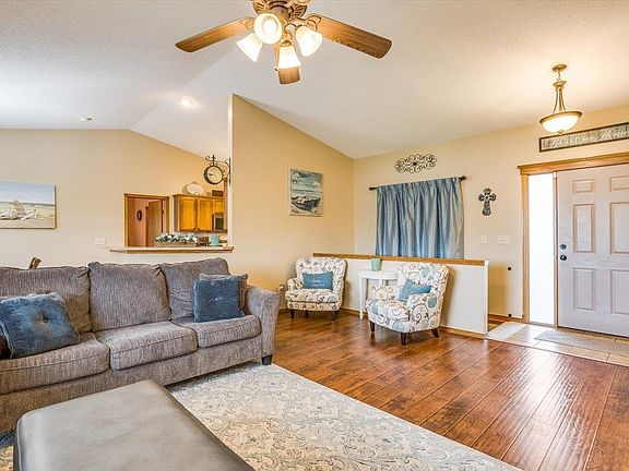 It's all yours if you can get momma to leave! Owners love their neighbors and say it's a wonderful place to raise children. This is one of the most beautiful lake lots on a cul-de-sac in family friendly Goddard, one of Wichita's preferred school districts. The school bus will pick right up from the corner. New roof, new siding, new paint inside and out, new stairs leading to the backyard from the covered back deck, lots of new flooring upstairs and down. Nice solid kitchen cabinets with super sweet pullouts, nice faucets and sinks throughout, all new fingerprint resistant appliances that all stay even the fridge. Master bath with double sinks, master closet, shower and a corner jetted tub you will love! Awesome wood burning fireplace in the basement for snuggling with the family in the winter. Has the potential to be a 5-bedroom 3-bathroom house if you finish the spaces in the basement. Oversized garage with tons of overhead storage. Wrought-iron fence. Nice sitting areas in the front and back that are covered from the sun but let you enjoy beautiful Kansas sunsets! If you hurry you can be in before Goddard's favorite holiday the 4th and watch the fireworks reflect off the pond with all your family and friends! Call your agent to schedule a showing today!