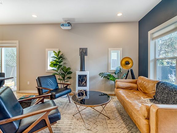 Exciting opportunity to own a two story, turnkey modern residence in the heart of Bend's River West neighborhood, just minutes to restaurants, breweries, and everything downtown Bend has to offer. The home features a large and open great room layout with modern fireplace insert, and bright open kitchen. Upstairs, the generous primary suite features vaulted ceilings, a large modern primary bathroom with double vanity, walk-in closet with built-ins, and spacious private covered upper deck. Additional bedroom with hall bath, oversized garage facing private alley, and charming outdoor entertaining space for all-seasons enjoyment in this perfect Bend retreat.