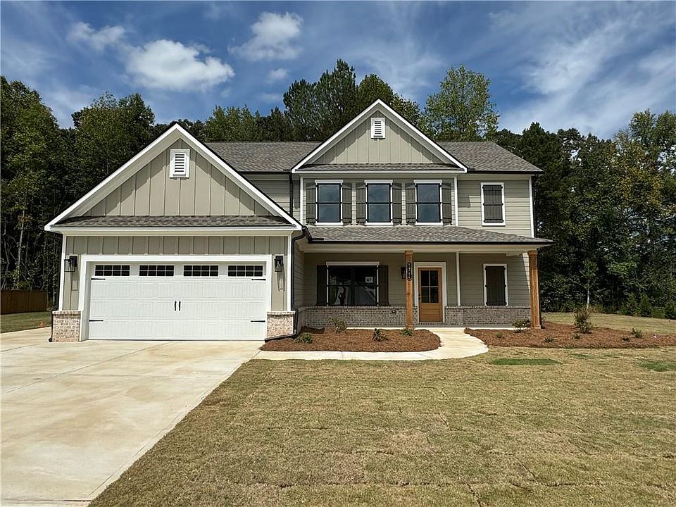 The Hayden-A distinctive 4 bedroom home with a formal dining room and Guest suite on the main level. The family room has a beautiful brick to ceiling fireplace with a cedar mantle, cofferd ceilings in the dining room, crown molding throughout and is open to the kitchen and breakfast area. Upstairs the owner's suite features a tray ceiling, double vanity bath with separate tub and shower and large walk-in closet. This home comes with 2 additional bedrooms upstairs, a full bath, a large loft area and a third car garage. Enjoy your morning coffee on the beautiful back covered patio. *Estimated completion date - September 2024.